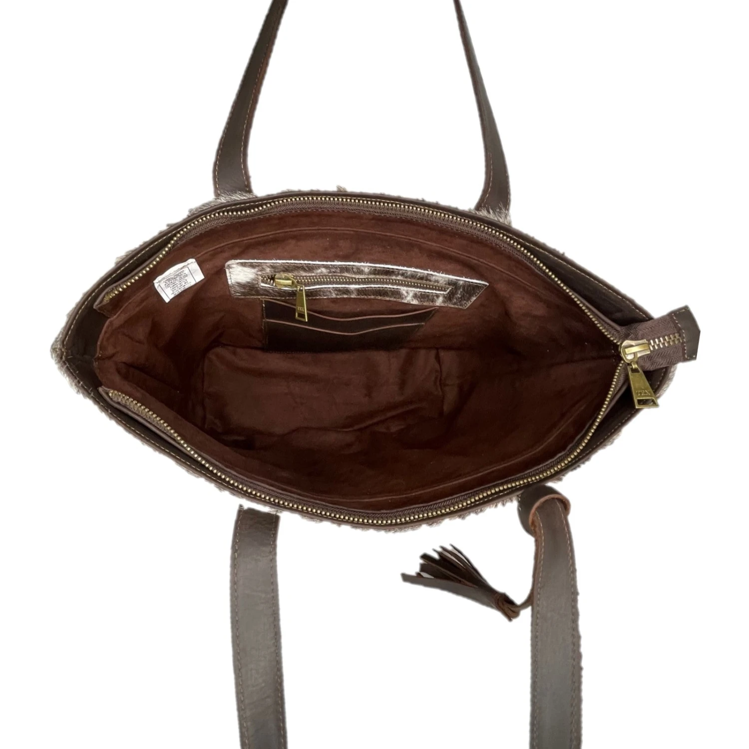 - Authentic cowhide tote bag.