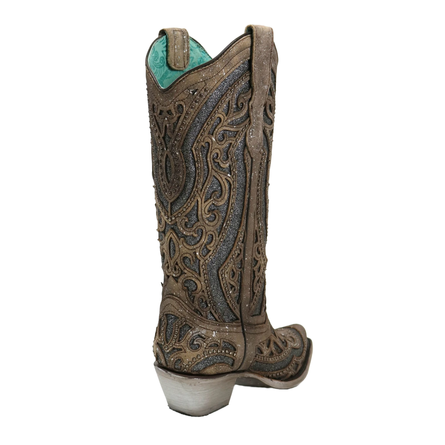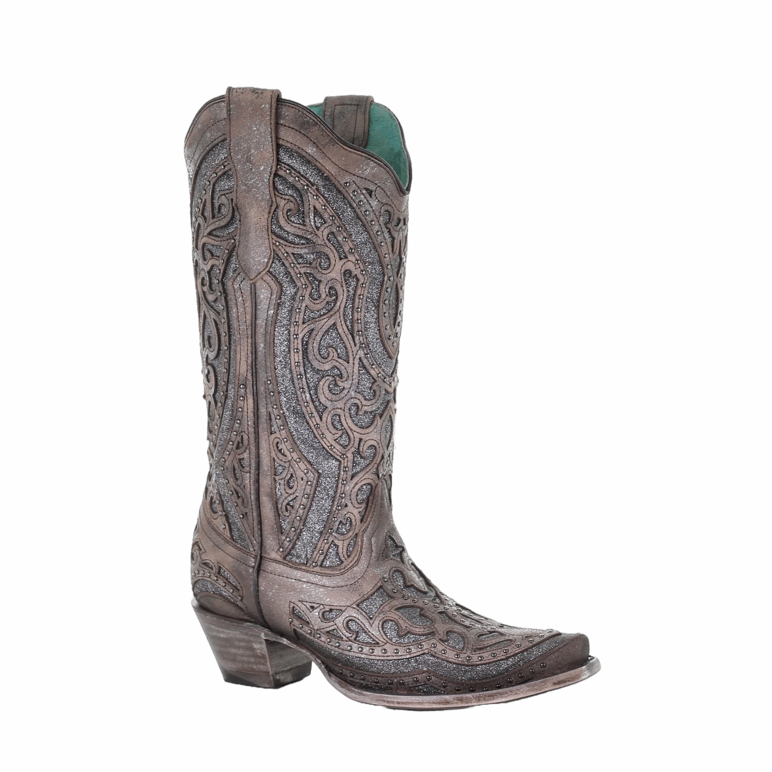 Corral Boots Corral Ladies Brown Grey Inlay & Studs Snip Toe Boots E1569