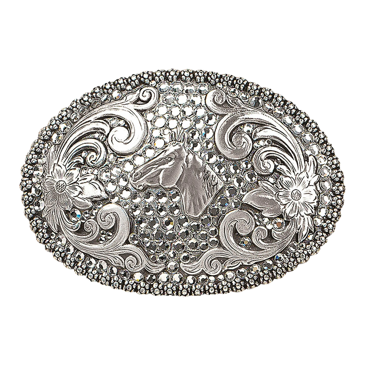 Nocona Ladies Silver & Crystal Horse Belt Buckle 37536