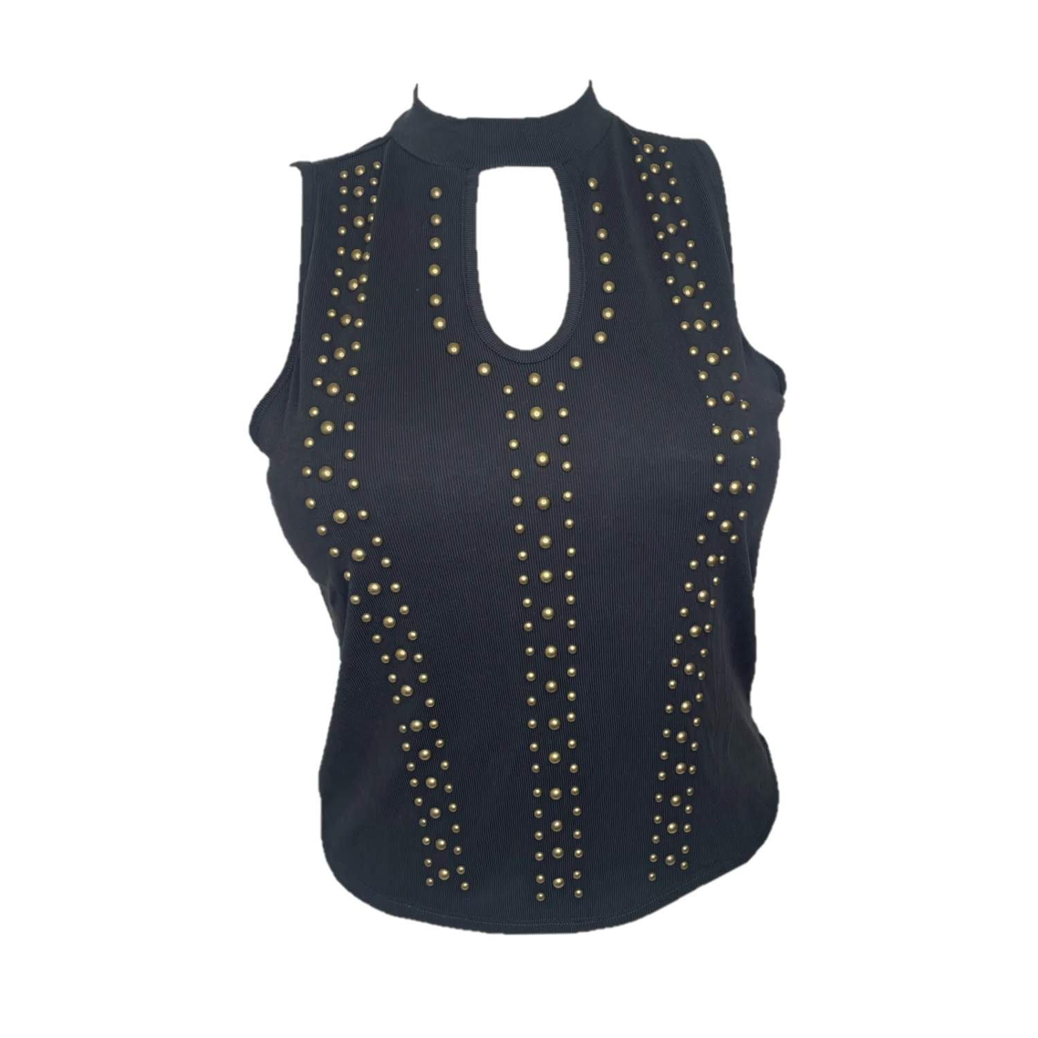 Rock & Roll Denim® Ladies Black Ribbed Studded Tank Top RRWT20R0Z9-01