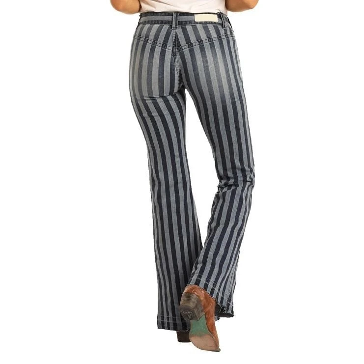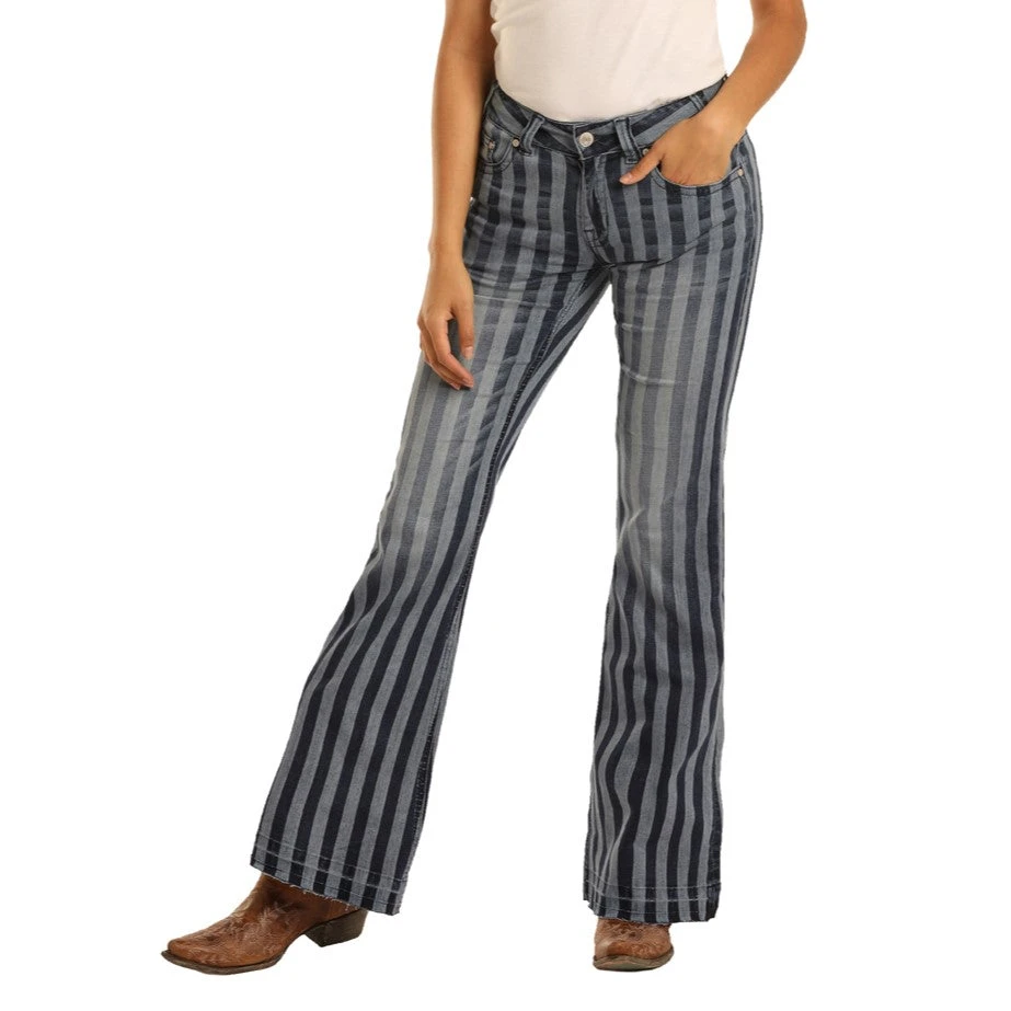 Rock & Roll Denim Ladies Mid Rise Flare Jeans W1F3462