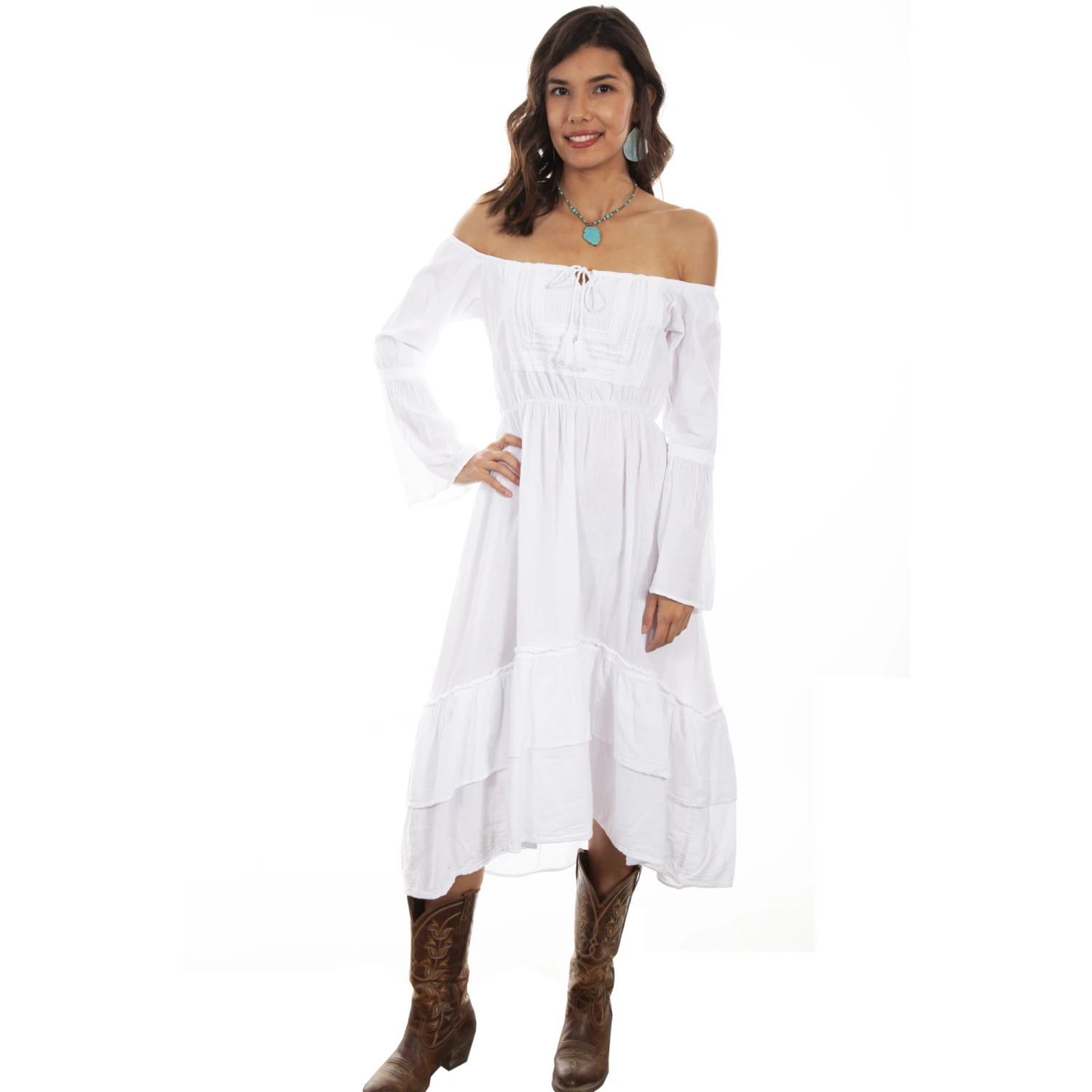 Scully Ladies White Scoop Neck Long Sleeve Dress PSL-249-WHT